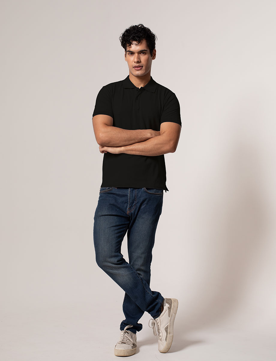 Gender: Men 67% Bamboo , 28% Cotton , 5% Elastane Regular Fit Shaped side slits Collar Fastener: Two Buttons Solid Color WASH CARE: Machine / Hand Gentle Wash Cold, Dark Colors Separately, No Bleach, Line / Hang Dry in Shade
